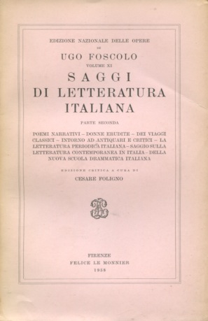 Firenze, Le Monnier, 1958, Edizione Nazionale dellle opere di Ugo Foscolo, 11