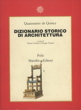 «Antoine Chrysostôme Quatremère de Quincy (1755-1849), il «Winckelmann francese», teorico delle arti e dell'architettura e principale ideologo del sistema delle belle arti, è autore di un corpus teorico che eserciterà un'influenza egemonica nell'ambito della cultura del tardo neoclassicismo europeo. Negli articoli che compongono il Dizionario storico di architettura, Quatremère si propone di riunire «i materiali principali di una storia dell'architettura» nonché tutte «le idee e le nozioni più o meno astratte che ne hanno fatto un'arte di immaginazione, di imitazione e di gusto». Redatto in una prima stesura nell'ambito dell'Encyclopédie Méthodique di Panckoucke tra il 1788 e il 1825, il Dictionnaire historique d'architecture viene pubblicato con alcune modifiche a Parigi nel 1832.